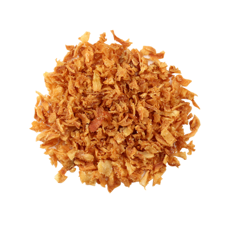 Жареный сушёный лук применяется в производстве полуфабрикатов, блюд общественного питания, фасованных закусок и готовой продукции. Продукт подходит для термически обработанных и холодных блюд. Благодаря хрустящей текстуре и насыщенному вкусу он активно используется в составе: