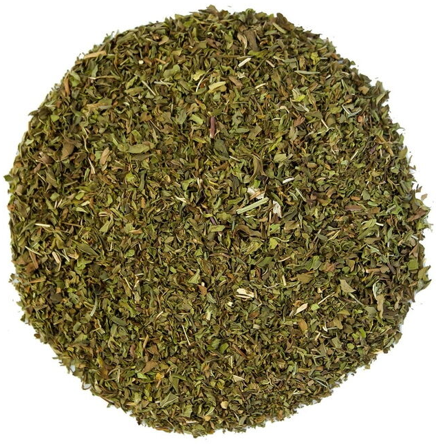 Имеет нежный, холодный запах и освежающий вкус. Лист резаный сушёный.